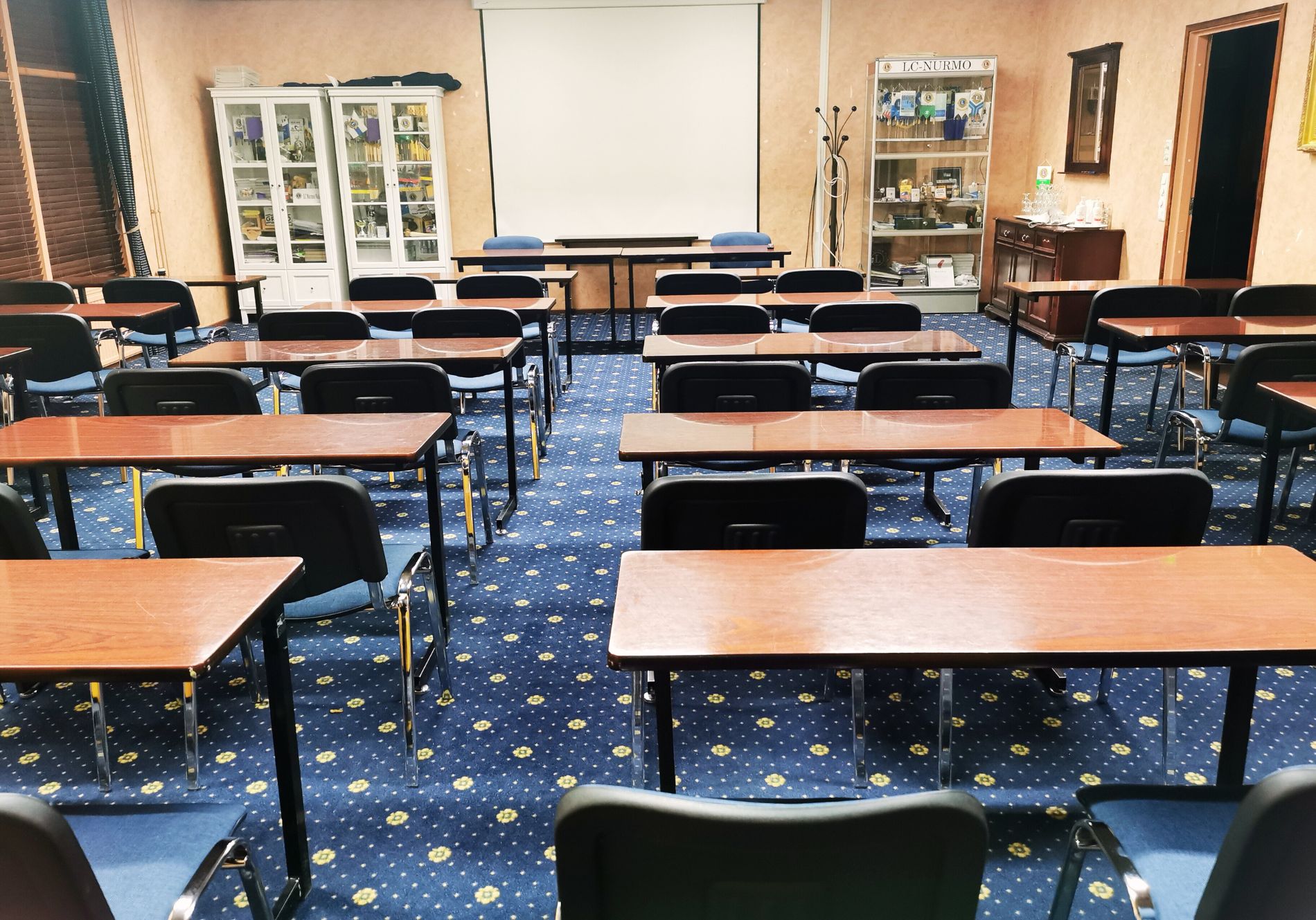 U-muoto 25 paikkaa, luokkamuodossa 40 paikkaa ja tuolirivein 70 paikkaa.